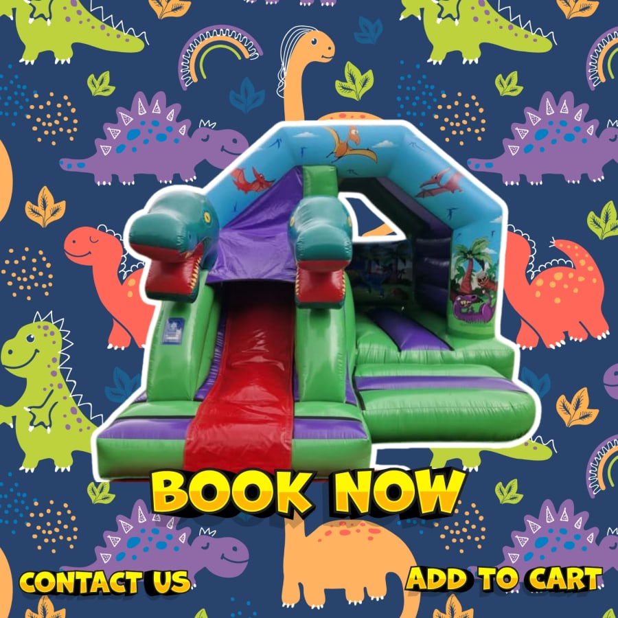 – the ultimate combo of bouncing and sliding fun. Kids will love exploring this vibrant, prehistoric world filled with friendly 3D dinosaurs before zooming down the slide to safety!